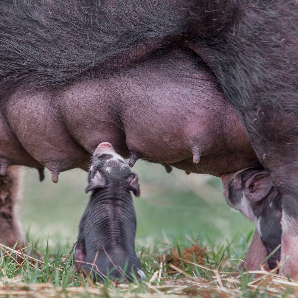 When I am in a barn, I sit down on the ground, and see what happens. Most animals are curious and come towards me. I keep a low profile and even crawl. It happens a lot that I step into manure or afterbirth...but that is all in the game. On one occasion, I was close to a big pregnant sow and she decided to pee...I got the full amount over me.