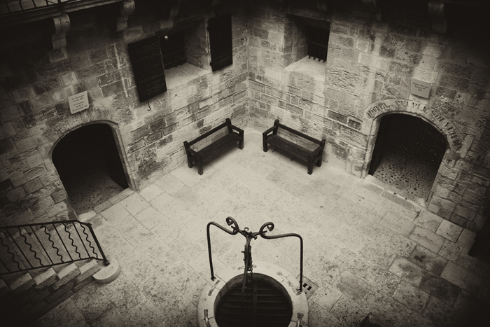 This was taken from atop the amphitheater in Arles, France. I simply waited for someone to walk into the scene and shot it.