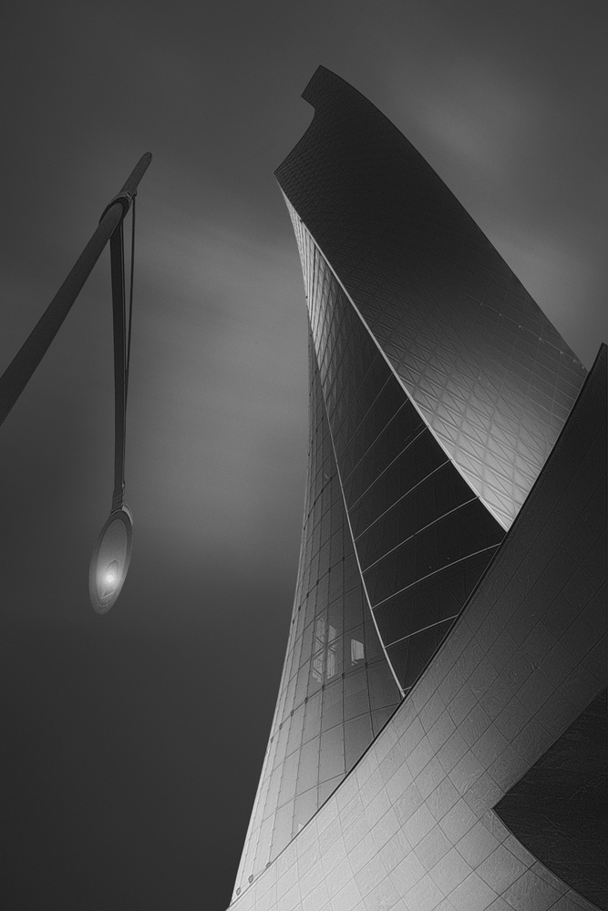 Ahmed likes to work in series using architecture very much like fashion photographers use models. For his latest series, called “Kuwait Trading Center”, he was inspired by old Arabian medieval swords, which are curved and have very wide blades. “For the composition of these series I took advantage of the distortion of an ultra wide lens. Then, using different tools in Photoshop l got the result I wanted”, he tells.
