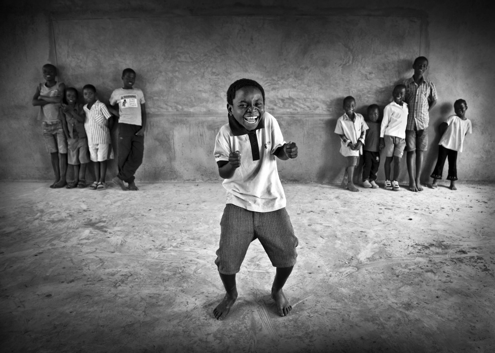 This shot was taken after I had been teaching English to a bunch of kids.  At a certain moment one of them started dancing in front of me while the others were rather shy and staid in the background. I can guarantee you, it was incredible fun!